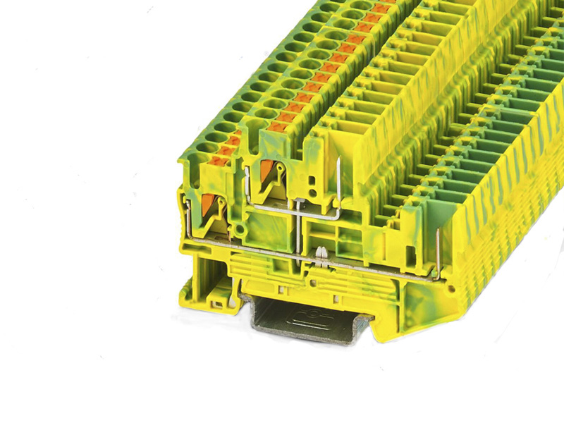 PTTB2.5/2PGNYE接地端子,連接量:4,接線方式:插拔式/插件連接,第一和第二層, 橫截面:0.14 mm2-4 mm2,安裝方式: NS3517.5,NS 35115,顏色: 黃綠相間